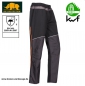 Ein umlaufend eingenähtes Netzgewebe sorgt für zusätzliche Ventilation, der verstärkte Schienbein- und Kniebereich macht die Schutzhose sehr robust. Die Regenschutzhose ist als Überzughose konzipiert und hat keine Taschen, dafür weit bis zum Oberschenkelansatz reichende, seitliche Reißverschlüsse für sehr bequemes und schnelles an- und ausziehen.